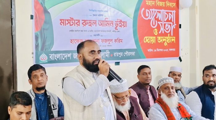 মহান বিজয় দিবস উপলক্ষে লক্ষ্মীপুরের রায়পুরে বাংলাদেশ জামায়াতে ইসলামীর উদ্যোগে আলোচনা সভা ও দোয়া অনুষ্ঠান অনুষ্ঠিত হয়েছে। মঙ্গলবার (১৬ ডিসেম্বর) বিকেল ৪টায় উপজেলা জামায়াতের কার্যালয়ে বিস্তারিত..