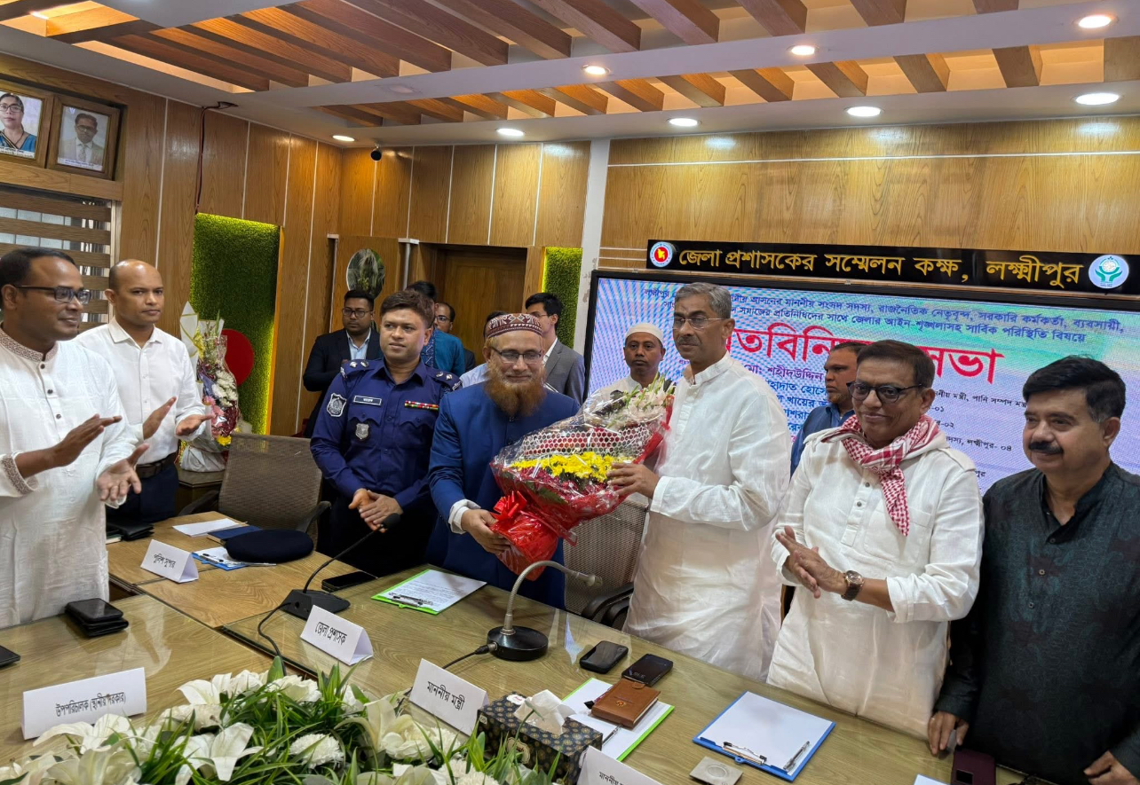 লক্ষ্মীপুর জেলা প্রশাসক ও জেলা ম্যাজিস্ট্রেট এস এম মেহেদী হাসান-এর সভাপতিত্বে অনুষ্ঠিত এ সভায় বিশেষ অতিথি হিসেবে উপস্থিত ছিলেন— মোঃ শাহাদাত হোসেন, মাননীয় সংসদ সদস্য, লক্ষ্মীপুর-০১,মোঃ আবুল খায়ের ভূঁইয়া, মাননীয় সংসদ সদস্য, লক্ষ্মীপুর-০২,এ বি এম আশরাফ উদ্দিন (নিজান), মাননীয় সংসদ সদস্য, লক্ষ্মীপুর-০৪; এবং মোঃ আর তারেক, পুলিশ সুপার, লক্ষ্মীপুর।