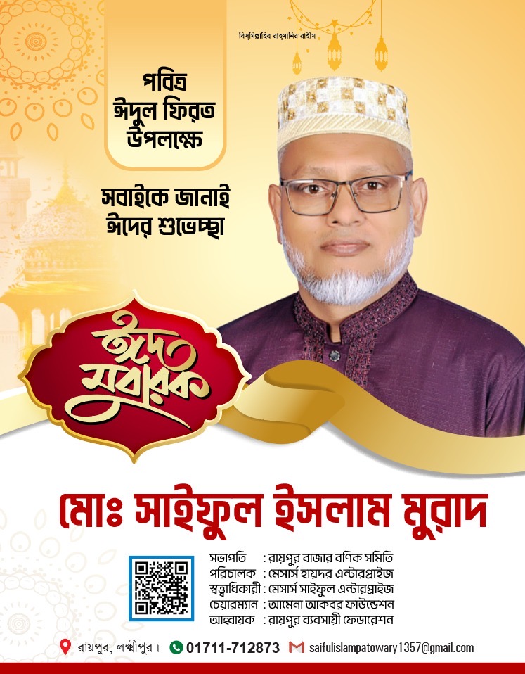 লক্ষ্মীপুরের রায়পুর পৌরসভার সম্ভাব্য মেয়র প্রার্থী হিসেবে আলোচনার শীর্ষে রয়েছেন সমাজসেবক ও ব্যবসায়ী নেতা সাইফুল ইসলাম মুরাদ। দীর্ঘদিন ধরে ব্যবসা-বাণিজ্যের পাশাপাশি বিভিন্ন সামাজিক ও মানবিক কর্মকাণ্ডে সম্পৃক্ত থাকার কারণে পৌরবাসীর কাছে তিনি একজন সৎ, ন্যায়পরায়ণ ও মানবিক ব্যক্তি হিসেবে পরিচিত।